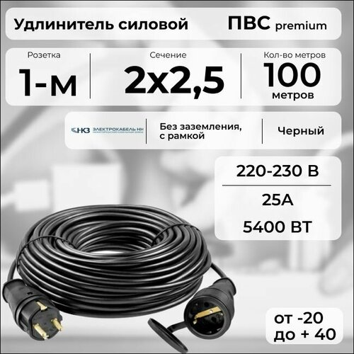 Удлинитель силовой «PREMIUM CABLE» на рамке, электрический 100 м кабель ПВС 2х2,5 черный ГОСТ: сравнение цен, характеристики, фото, актуальное наличие и цены.