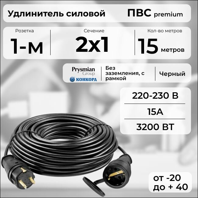 Удлинитель силовой «PREMIUM CABLE» на рамке, электрический 15 м кабель ПВС 2х1 черный ГОСТ: сравнение цен, характеристики, фото, актуальное наличие и цены.