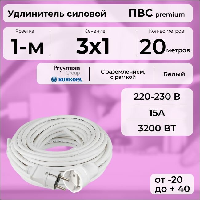 Удлинитель силовой «PREMIUM CABLE» кабель ПВС 3х1 белый, на рамке, электрический 20 м с заземлением: сравнение цен, характеристики, фото, актуальное наличие и цены.