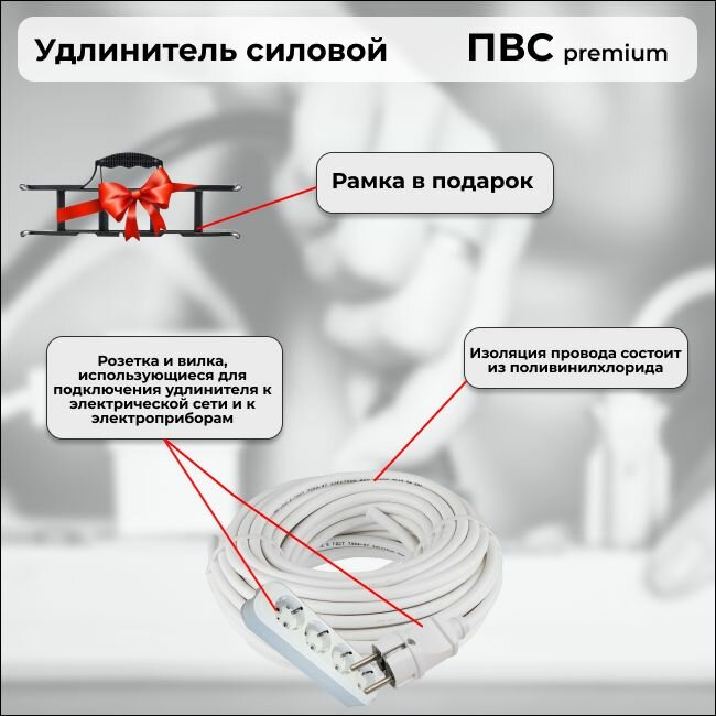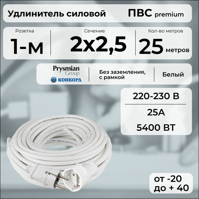 Удлинитель силовой «PREMIUM CABLE» кабель ПВС 2х2,5 белый, на рамке, 25 м для электроприборов в бухте: сравнение цен, характеристики, фото, актуальное наличие и цены.