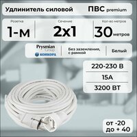 Удлинитель силовой «PREMIUM CABLE» кабель ПВС 2х1 белый, на рамке, 30 м для электроприборов в бухте: сравнение цен, характеристики, фото, актуальное наличие и цены.