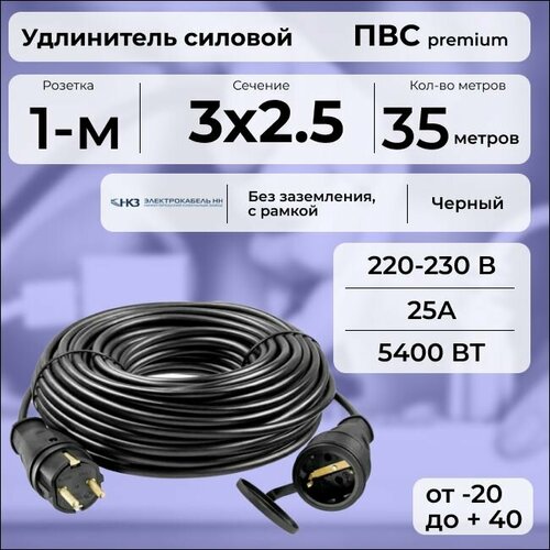 Удлинитель силовой «PREMIUM CABLE» на рамке, электрический 35 м с заземлением, кабель ПВС 3х2,5 черный: сравнение цен, характеристики, фото, актуальное наличие и цены.