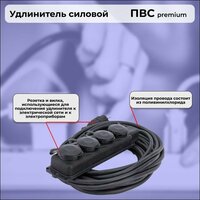Удлинитель силовой «PREMIUM CABLE» кабель ПВС 3х1 черный, с 4-ой розеткой, электрический 2 м с заземлением: сравнение цен, характеристики, фото, актуальное наличие и цены.