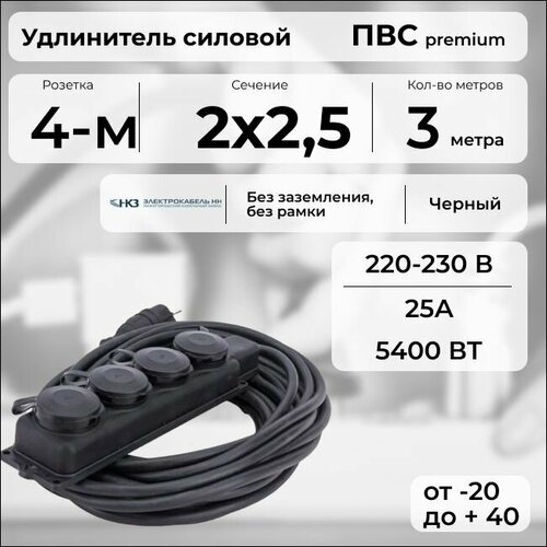 Купить Удлинитель силовой «PREMIUM CABLE» с четырехместной розеткой, электрический 3 м для электроприборов в бухте, кабель ПВС 2х2,5 черный ГОСТ + с доставкой по всей России. Удлинитель силовой «PREMIUM CABLE» с четырехместной розеткой, электрический 3 м для электроприборов в бухте, кабель ПВС 2х2,5 черный ГОСТ +: сравнение цен, характеристики, фото, актуальное наличие и цены.