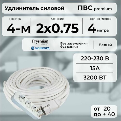 Купить Удлинитель силовой «PREMIUM CABLE» с четырехместной розеткой, электрический 4 м для электроприборов в бухте, кабель ПВС 2х0,75 белый ГОСТ + с доставкой по всей России. Удлинитель силовой «PREMIUM CABLE» с четырехместной розеткой, электрический 4 м для электроприборов в бухте, кабель ПВС 2х0,75 белый ГОСТ +: сравнение цен, характеристики, фото, актуальное наличие и цены.