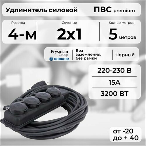 Удлинитель силовой "PREMIUM CABLE" на кабеле ПВС премиум брендов Конкорд и PRYSMIAN - ваш идеальный выбор!