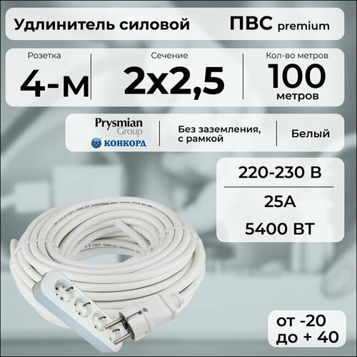 Удлинитель силовой «PREMIUM CABLE» кабель ПВС 2х2,5 белый, с 4 розетками на рамке, 100 м для электроприборов в бухте: сравнение цен, характеристики, фото, актуальное наличие и цены.