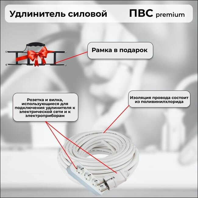 Удлинитель силовой «PREMIUM CABLE» кабель ПВС 2х2,5 белый, с 4 розетками на рамке, 15 м для электроприборов в бухте: сравнение цен, характеристики, фото, актуальное наличие и цены.