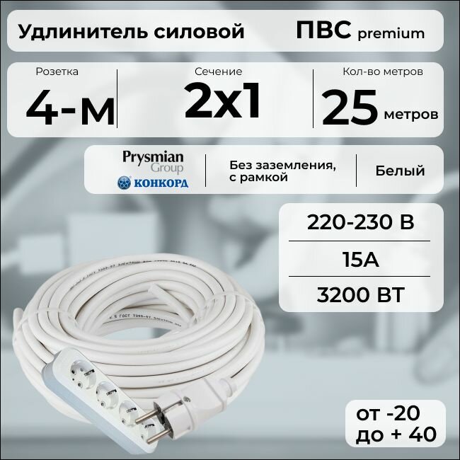 Удлинитель силовой «PREMIUM CABLE» кабель ПВС 2х1 белый, с 4 розетками на рамке, 25 м для электроприборов в бухте: сравнение цен, характеристики, фото, актуальное наличие и цены.