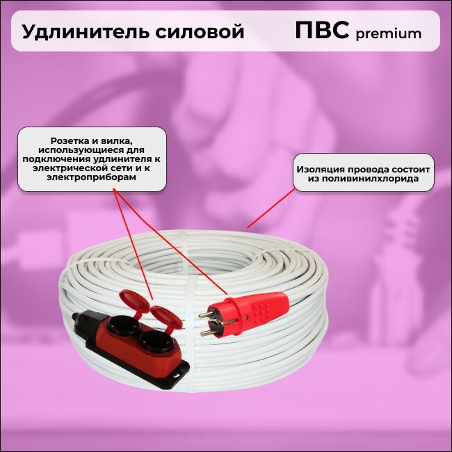 Удлинитель силовой «PREMIUM CABLE» с 2-м розеткой, электрический 4 м с заземлением, каучук, ПВС 3х2,5 ГОСТ: сравнение цен, характеристики, фото, актуальное наличие и цены.