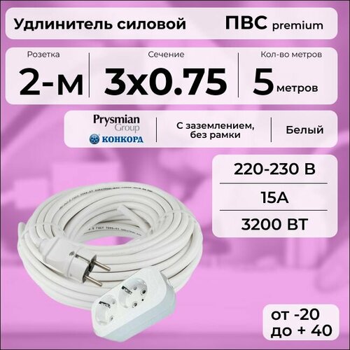 Купить Удлинитель силовой «PREMIUM CABLE» с двухместной розеткой, электрический 5 м для электроприборов с заземлением в бухте, кабель ПВС 3х0,75 белый ГОСТ + с доставкой по всей России. Удлинитель силовой «PREMIUM CABLE» с двухместной розеткой, электрический 5 м для электроприборов с заземлением в бухте, кабель ПВС 3х0,75 белый ГОСТ +: сравнение цен, характеристики, фото, актуальное наличие и цены.