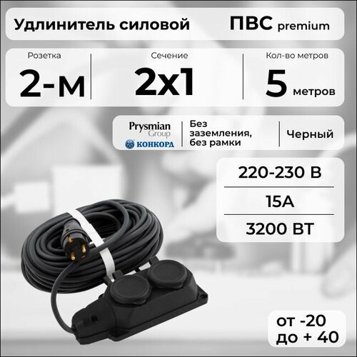 Купить Удлинитель силовой «PREMIUM CABLE» с двухместной розеткой, электрический 5 м для электроприборов в бухте, кабель ПВС 2х1 черный ГОСТ + с доставкой по всей России. Удлинитель силовой «PREMIUM CABLE» с двухместной розеткой, электрический 5 м для электроприборов в бухте, кабель ПВС 2х1 черный ГОСТ +: сравнение цен, характеристики, фото, актуальное наличие и цены.