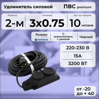 Удлинитель силовой «PREMIUM CABLE» кабель ПВС 3х0,75 черный, с 2-ой розеткой на рамке, электрический 10 м с заземлением: сравнение цен, характеристики, фото, актуальное наличие и цены.