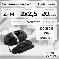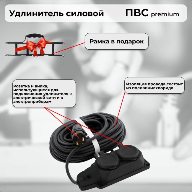Удлинитель силовой «PREMIUM CABLE» с 2 розетками на рамке, электрический 20 м кабель ПВС 2х2,5 черный ГОСТ: сравнение цен, характеристики, фото, актуальное наличие и цены.