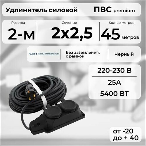 Удлинитель силовой «PREMIUM CABLE» с 2 розетками на рамке, электрический 45 м кабель ПВС 2х2,5 черный ГОСТ: сравнение цен, характеристики, фото, актуальное наличие и цены.