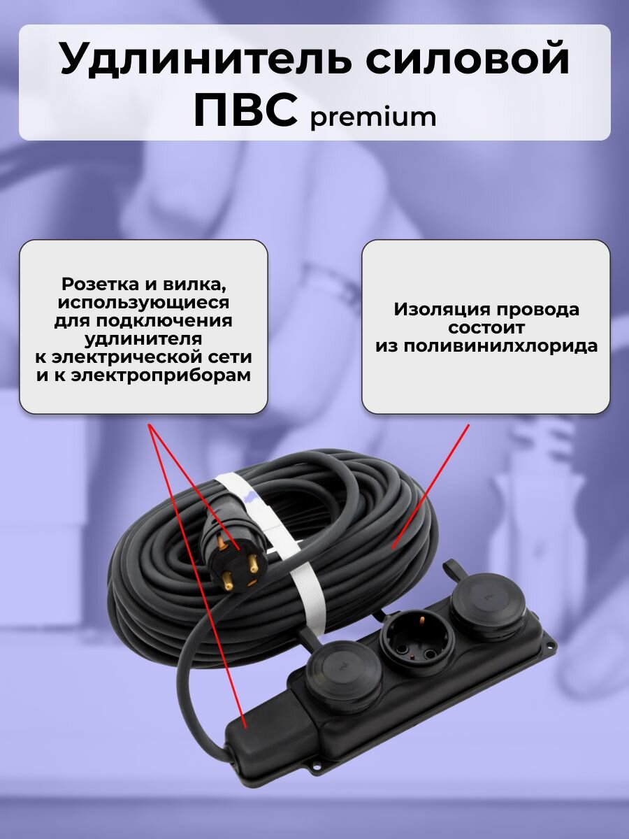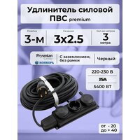 Удлинитель силовой «PREMIUM CABLE» с 3-м розеткой, электрический 3 м с заземлением, кабель ПВС 3х2,5 черный: сравнение цен, характеристики, фото, актуальное наличие и цены.