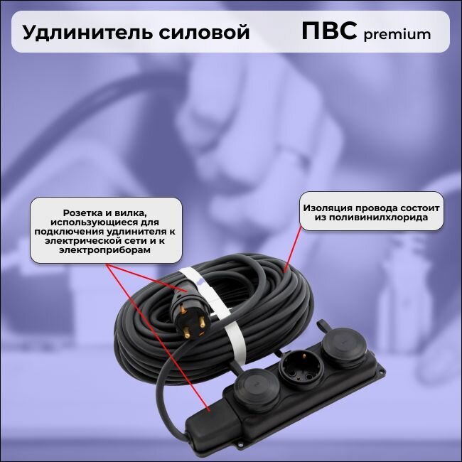 Удлинитель силовой «PREMIUM CABLE» кабель ПВС 3х1 черный, с 3-ой розеткой, электрический 4 м с заземлением: сравнение цен, характеристики, фото, актуальное наличие и цены.