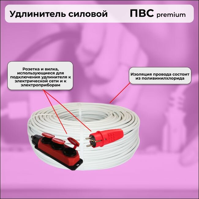 Удлинитель силовой «PREMIUM CABLE» с 3-м розеткой, электрический 4 м с заземлением, каучук, ПВС 3х2,5 ГОСТ: сравнение цен, характеристики, фото, актуальное наличие и цены.