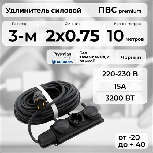 Купить Удлинитель силовой «PREMIUM CABLE» с трехместной розеткой на рамке, электрический 10 м для электроприборов в бухте, кабель ПВС 2х0,75 черный ГОСТ + с доставкой по всей России. Удлинитель силовой «PREMIUM CABLE» с трехместной розеткой на рамке, электрический 10 м для электроприборов в бухте, кабель ПВС 2х0,75 черный ГОСТ +: сравнение цен, характеристики, фото, актуальное наличие и цены.