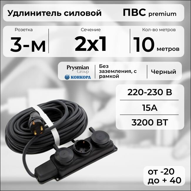 Удлинитель силовой «PREMIUM CABLE» с 3 розетками на рамке, электрический 10 м кабель ПВС 2х1 черный ГОСТ: сравнение цен, характеристики, фото, актуальное наличие и цены.