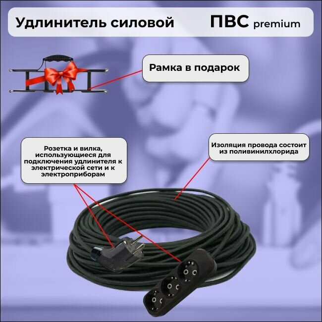 Удлинитель силовой «PREMIUM CABLE» кабель ПВС 3х0,75 черный, с 3-ой розеткой на рамке, электрический 100 м с заземлением: сравнение цен, характеристики, фото, актуальное наличие и цены.