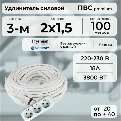 Удлинитель силовой «PREMIUM CABLE» кабель ПВС 2х1,5 белый, с 3 розетками на рамке, 100 м для электроприборов в бухте: сравнение цен, характеристики, фото, актуальное наличие и цены.