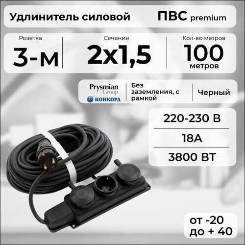 Удлинитель силовой «PREMIUM CABLE» с 3 розетками на рамке, электрический 100 м кабель ПВС 2х1,5 черный ГОСТ: сравнение цен, характеристики, фото, актуальное наличие и цены.