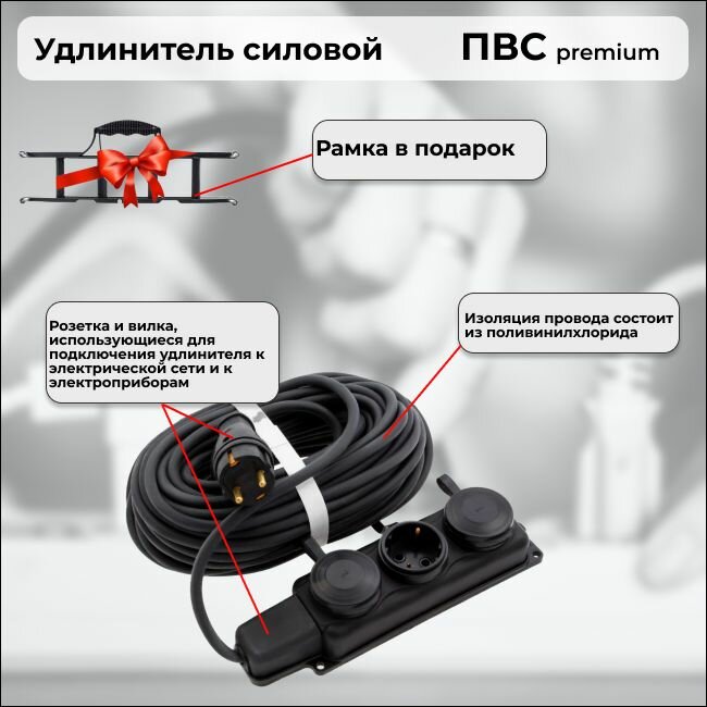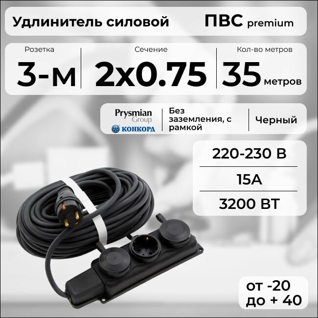 Удлинитель силовой «PREMIUM CABLE» с 3-ой розеткой на рамке, кабель ПВС 2х0,75 черный, 35 м для электроприборов в бухте: сравнение цен, характеристики, фото, актуальное наличие и цены.