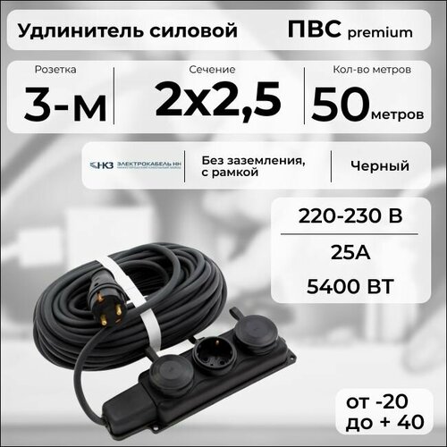 Удлинитель силовой «PREMIUM CABLE» с 3 розетками на рамке, электрический 50 м кабель ПВС 2х2,5 черный ГОСТ: сравнение цен, характеристики, фото, актуальное наличие и цены.