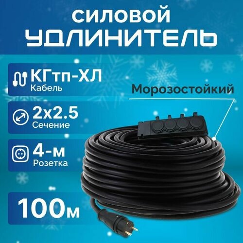 Удлинитель силовой с 4-м розеткой, кабель КГтп-ХЛ 2х2.5 ГОСТ для уличных и внутренних работ морозостойкий 100 м: сравнение цен, характеристики, фото, актуальное наличие и цены.