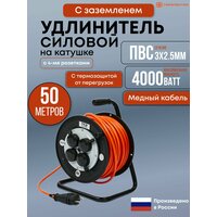 Представляем удлинитель силовой на ударопрочной катушке с термозащитой. Этот мощный удлинитель, рассчитанный на нагрузку до 4000 Вт, отлично подходит для использования в различных условиях, включая строительные площадки и дачные участки. Длина кабеля составляет 50 метров, что предоставляет вам большую свободу в передвижении и подключении электроинструментов.
