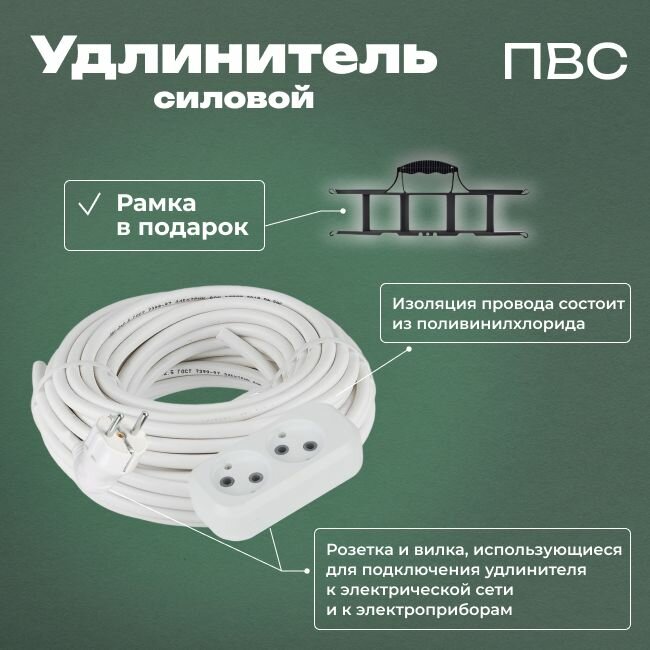 Удлинитель силовой с угловой вилкой ГОСТ «PREMIUM CABLE» с 2-м розеткой на рамке с заземлением ПВС 3х1,5 белый 100 м: сравнение цен, характеристики, фото, актуальное наличие и цены.