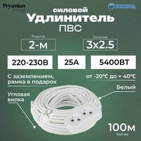 Удлинитель силовой с угловой вилкой»PREMIUM CABLE» с 2-м розеткой на рамке, 100 м с заземлением, каучук, ПВС 3х2,5 ГОСТ: сравнение цен, характеристики, фото, актуальное наличие и цены.