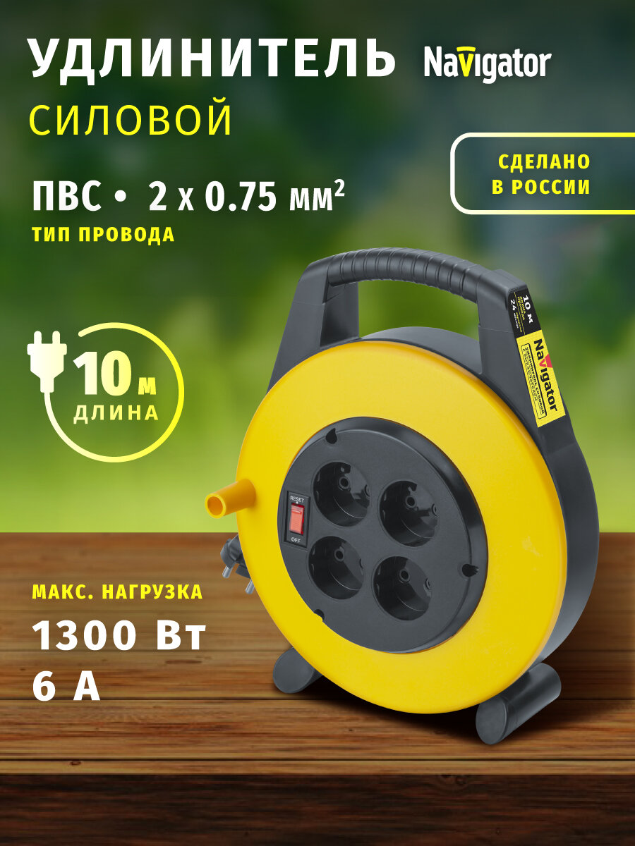 Удлинитель силовой с выключателем в закрытом корпусе Navigator 93 954 NPE-RC, 4 розетки, б/зазем, 10м, IP20: сравнение цен, характеристики, фото, актуальное наличие и цены.