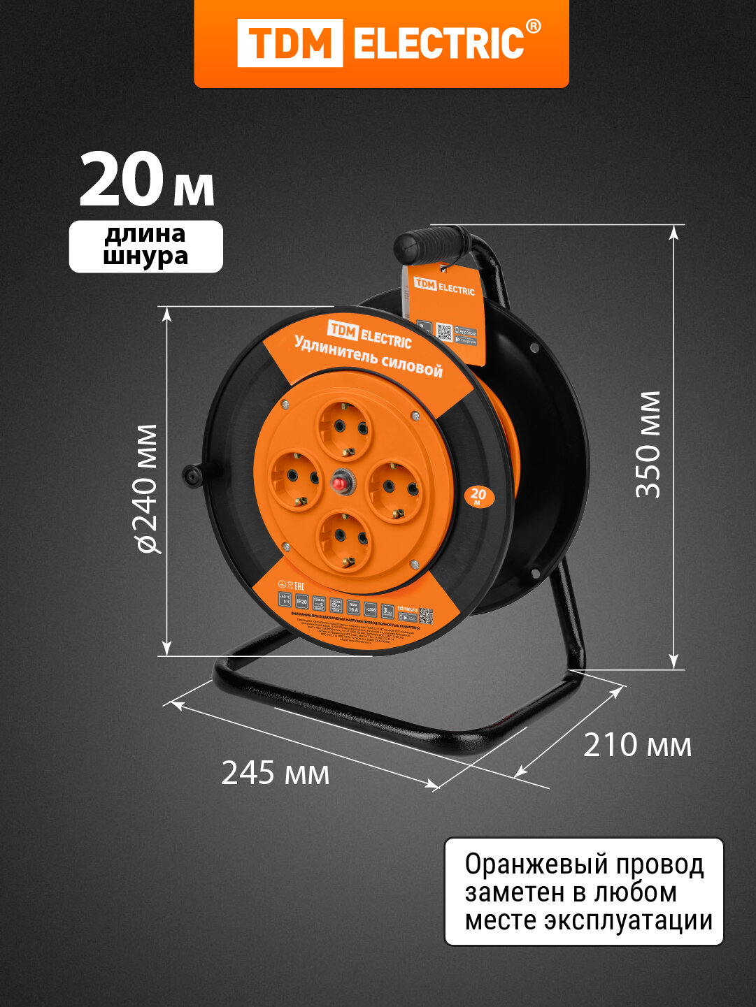Купить Удлинитель силовойна катушке, 20 метров, 4 розетки, ПВС 3х1,0 TDM Electric с доставкой по всей России. Удлинитель силовойна катушке, 20 метров, 4 розетки, ПВС 3х1,0 TDM Electric: сравнение цен, характеристики, фото, актуальное наличие и цены.