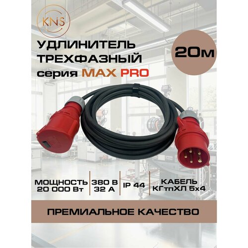 Купить Удлинитель силовой трехфазный 20 м КГтп-ХЛ 5х4 мм 32А 380В 3P+N+E IP44 серии MAX PRO KNS с доставкой по всей России.