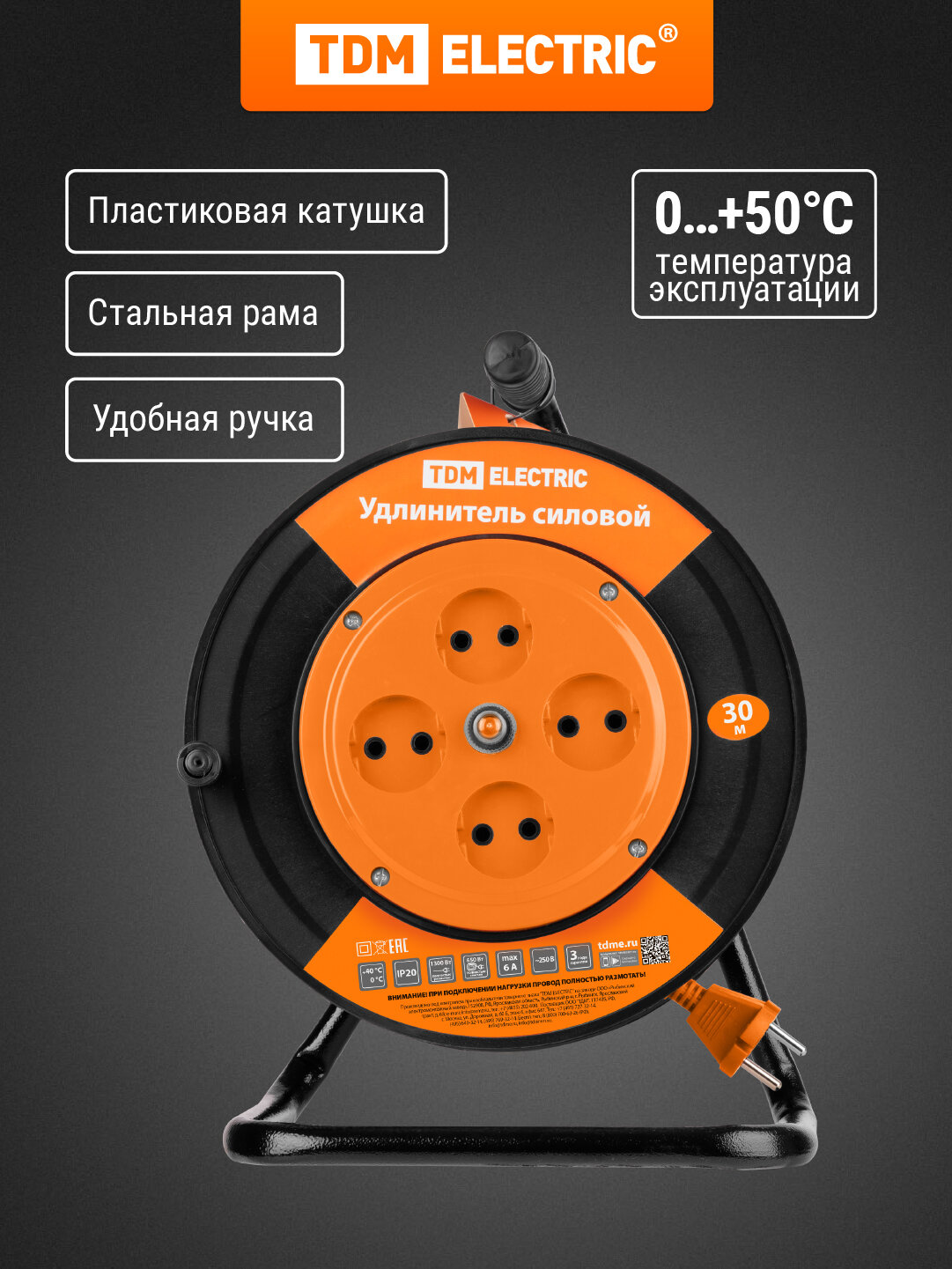 Купить Удлинитель силовой на катушке, 30 метров, 4 розетки, ПВС 2х0,75 TDM Electric с доставкой по всей России. Удлинитель силовой на катушке, 30 метров, 4 розетки, ПВС 2х0,75 TDM Electric: сравнение цен, характеристики, фото, актуальное наличие и цены.