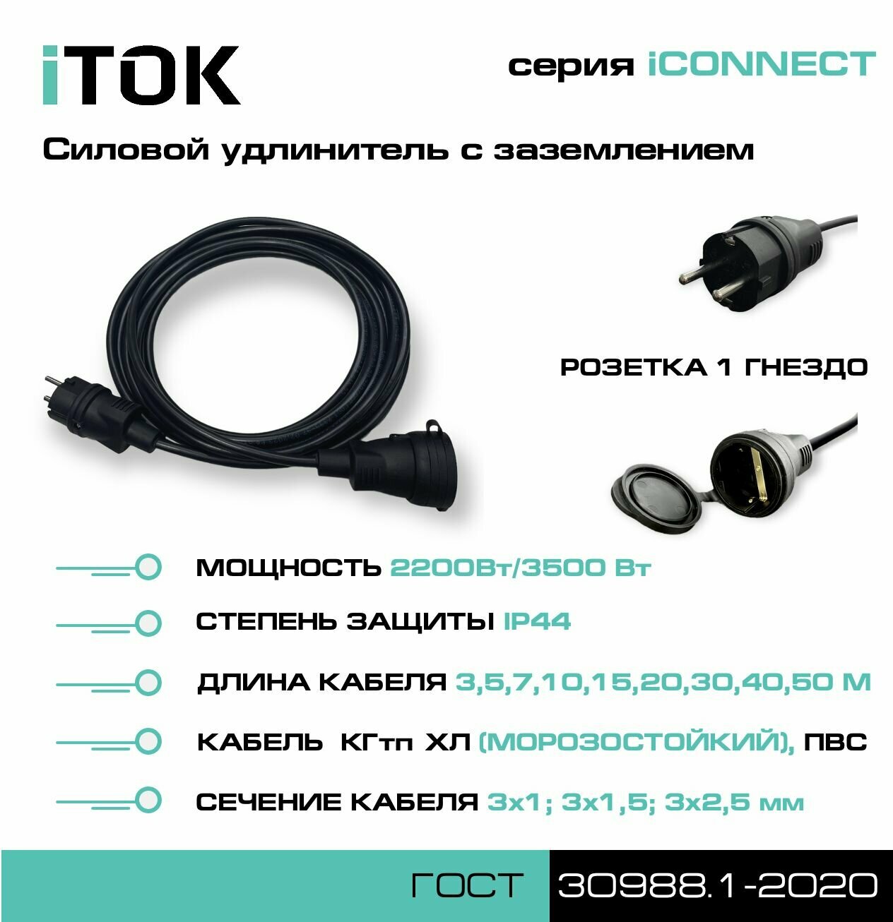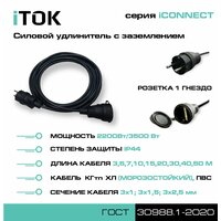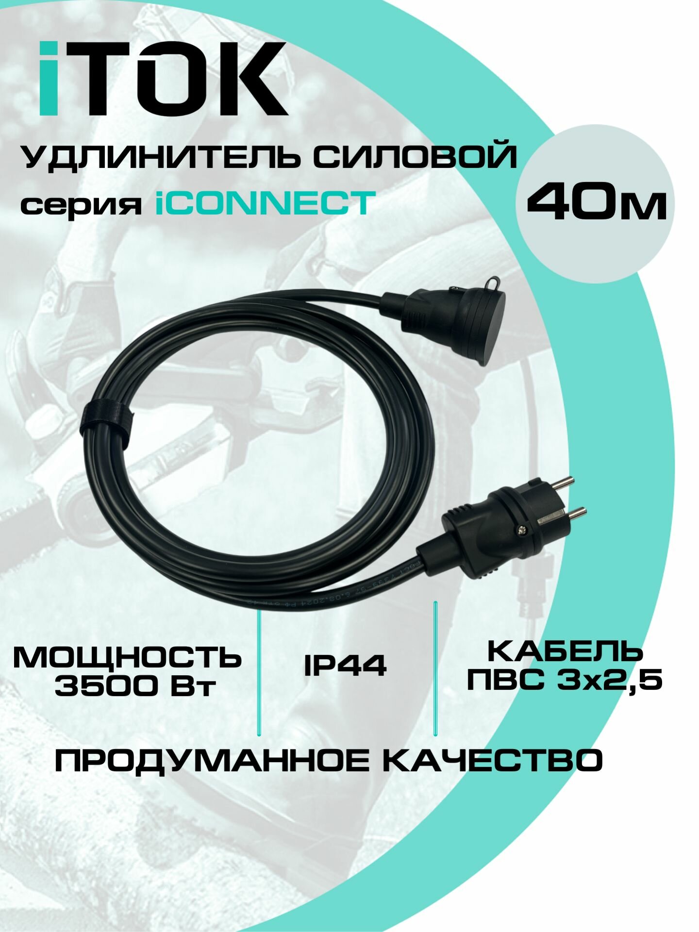 Удлинитель силовой уличный ПВС 3х2,5 мм 1 розетка IP44 40 м с заземлением серии iCONNECT iTOK: сравнение цен, характеристики, фото, актуальное наличие и цены.