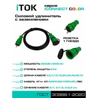 Удлинитель силовой уличный ПВС 3х2,5 мм 1 розетка IP44 цвет зеленый 7 м с заземлением серии iCONNECT COLOR iTOK: сравнение цен, характеристики, фото, актуальное наличие и цены.