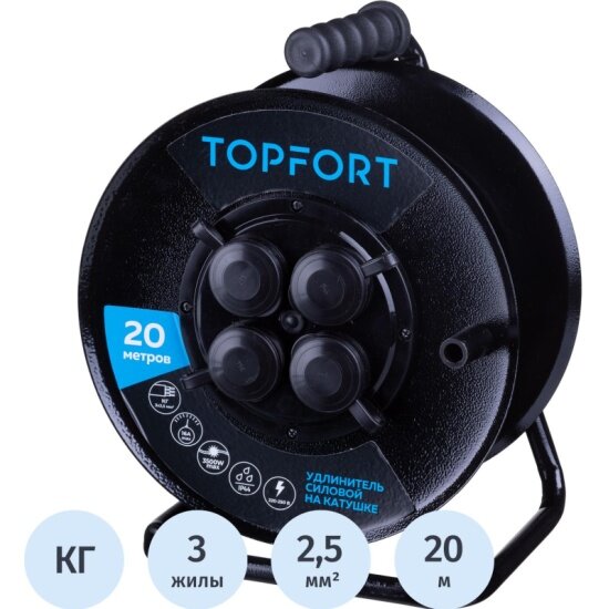 Купить Удлинитель Topfort метал. КГ 3×2,5 кв. мм 20м 16А 4 гнезда с/з, с/загл, IP44 с доставкой по всей России. Удлинитель Topfort метал. КГ 3×2,5 кв. мм 20м 16А 4 гнезда с/з, с/загл, IP44: сравнение цен, характеристики, фото, актуальное наличие и цены.