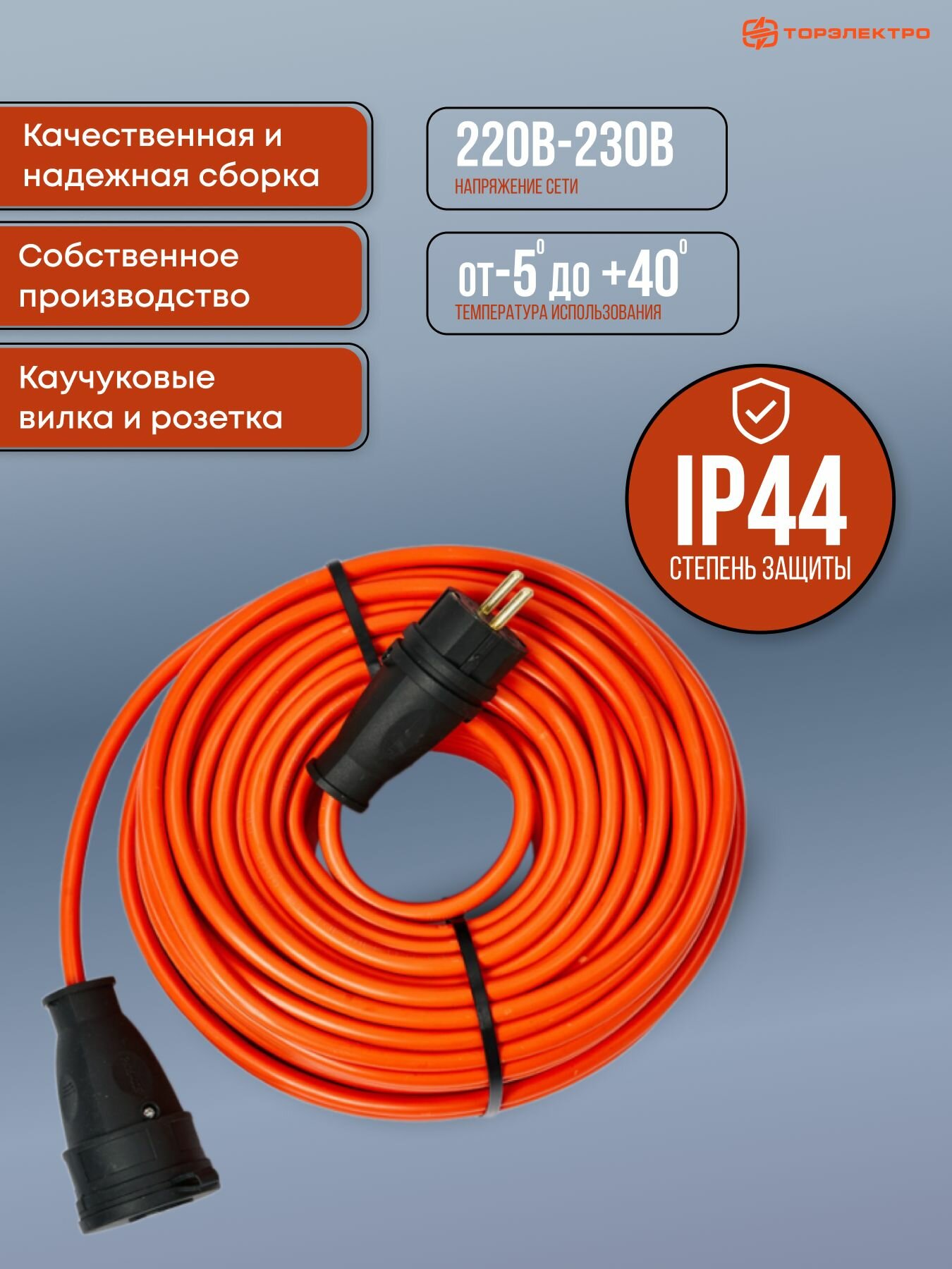 Купить Удлинитель уличный силовой ТОР 20 метров, ПВС 3х1,5 с заземлением 16А, 3500 Вт, IP44, 220В с доставкой по всей России.