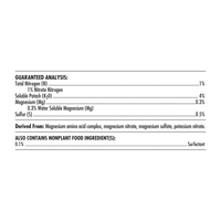 Применение: • Можно использовать при выращивании в почве или торфе, так и при выращивании методом капельного орошения или периодического затопления, а также в гидропонических системах. pH Perfect Grow применяется на протяжении всего жизненного цикла растений. • Во время фазы цветения данные удобрение поставляет калий, фосфор и другие питательные вещества непосредственно в сердце ваших растений, и благодаря этому достигается максимальный размер, вес и расцветание. • Поливайте им растение каждый день, если используете кокосовый субстрат. Два - четыре раза в неделю — если субстратом является почва. Перед применением хорошо встряхните баночку с удобрением. • Advanced Nutrients советуют использовать это удобрение как программу питания состоящую из трех компонентов Grow, Micro, Bloom в соотношении в 1:1:1. В период Цветения: 1:2:3 На Вегетативной стадии: 3:2:1. • Добавьте в чистую воду сначала Micro, затем Grow и Bloom. Полейте растение питательным раствором. Дозирование: В первые шесть недель фазы цветения, а также на всем протяжении фазы вегетативного роста необходимо добавлять 4 мл состава на каждый 1 литр воды. Состав: • Азот — 2 % • Аммиачный Азот — 0.3 % • Нитратный Азот — 1.7 % • P2O5 — 1 % • K2O — 6 % • Mg — 0.59 % • Растворимый Магний — 0.59 % • S — 1.01 % • Объединённая Сера — 1.01 %