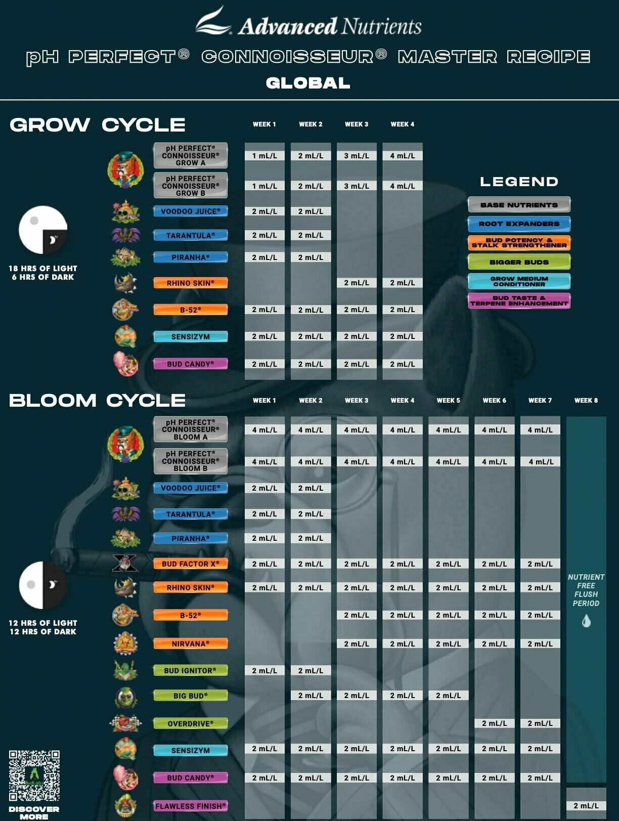 1-2мл/л питательного раствора, 1 раз в неделю (с 1 по 6 неделю цветения); почва: смешайте 1 мл на 1 литр воды для каждого полива; используйте каждую неделю в течение всей вегетативной стадии и фазы цветения; гидропоника: смешайте 1 мл на 1 литр и добавьте в резервуар для питательных веществ; используйте еженедельно в течение вегетативной стадии и фазы цветения