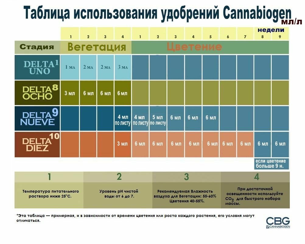 Cannabiogen Delta 8 базовое питание для вегетативной фазы роста растений, обладает ярко выраженным действием активации метаболизма, ускоряет и повышает выработку белка, который служит важным строительным элементом, в состав Cannabiogen Delta 8 входит отлично подобранное соотношение микроэлементов: B, Co, Cu, Mn, Mo, Zn, Fe, углеводов и необходимых витаминов, которые влияют на активной рост и увеличение зеленной массы растений.