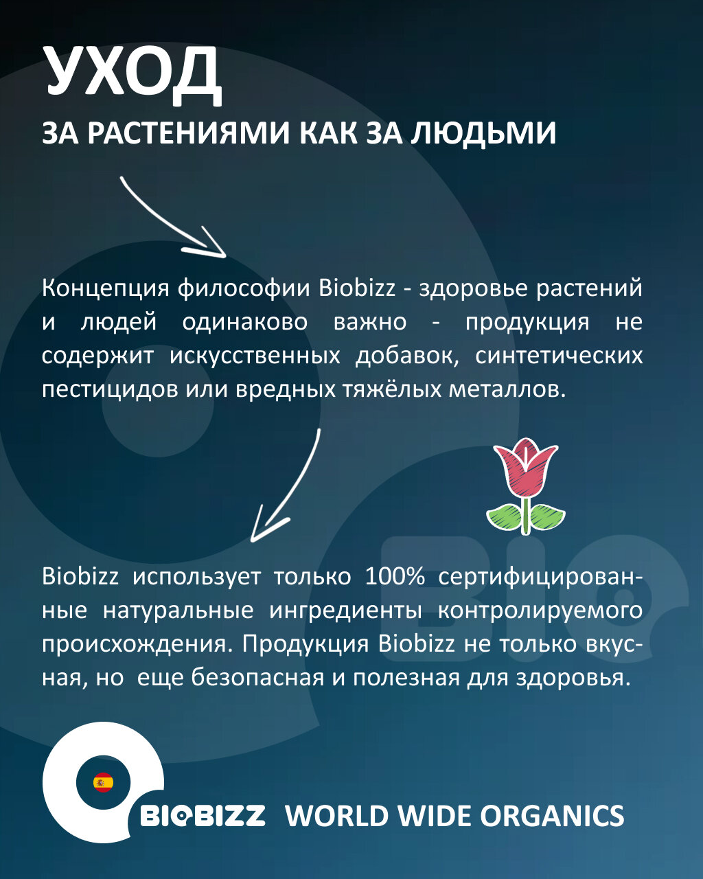 Натуральный препарат, стимулятор, позволяющий увеличить его урожай и сделать плоды более эстетичными и безопасными по составу. Основные действующие вещества входящие в его состав – аминокислоты и энзимы, полученные из растительного сырья путем гидролиза и ферментации. Они ускоряют процессы обмена веществ и «строительства» клеток, выводят из тканей растения токсины, сокращают недостаток влаги, эффективно удерживая ее в тканях растения. Ваш результат с ним: интенсивный рост растения, быстрое созревание плодов, обильное цветение, повышение вкусовых качеств урожая, улучшение его состава. Органические удобрения от BioBizz обладают комплексным действием: они не только активизируют рост рассады, но и повысят ее иммунитет, улучшат минеральный состав почвы и умножат эффективность минеральных удобрений (совместимы со всеми комплексами). Не рекомендуется использовать с другими активаторами-аналогами (например, BioThrive), потому что рассада может получить передозировку питательных веществ. Удобрение применяется при каждом поливе в течение вегетативной стадии развития рассады. Пропорция – 5 мл на 1 л воды.