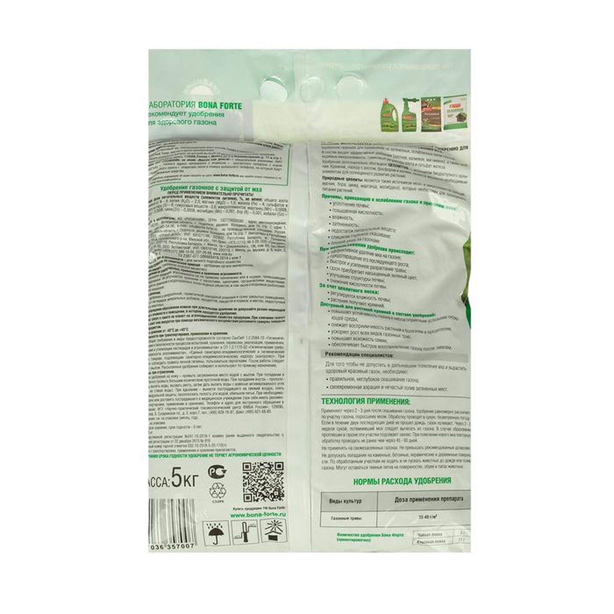 Обогащено цеолитами. Формула 2в1: восстанавливает почву, избавляет от мха. Весна-лето. Защита газона от мха, способствует аэрации почвы. Здоровый газон через 14 дней. До 160 м2 экономично. Для личного подсобного хозяйства. Удобрение органо-минарельное.