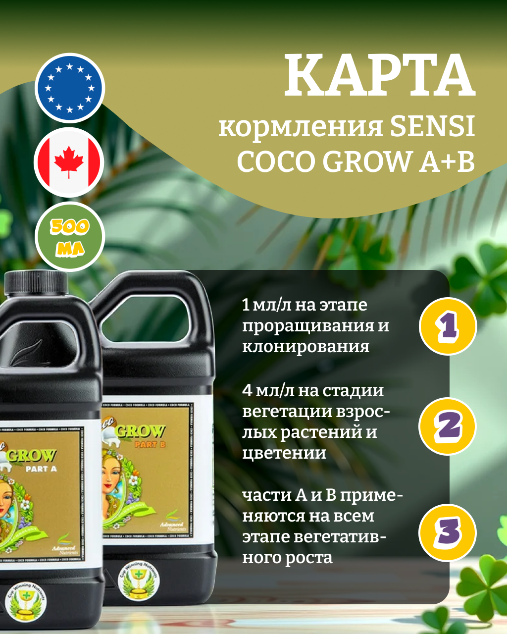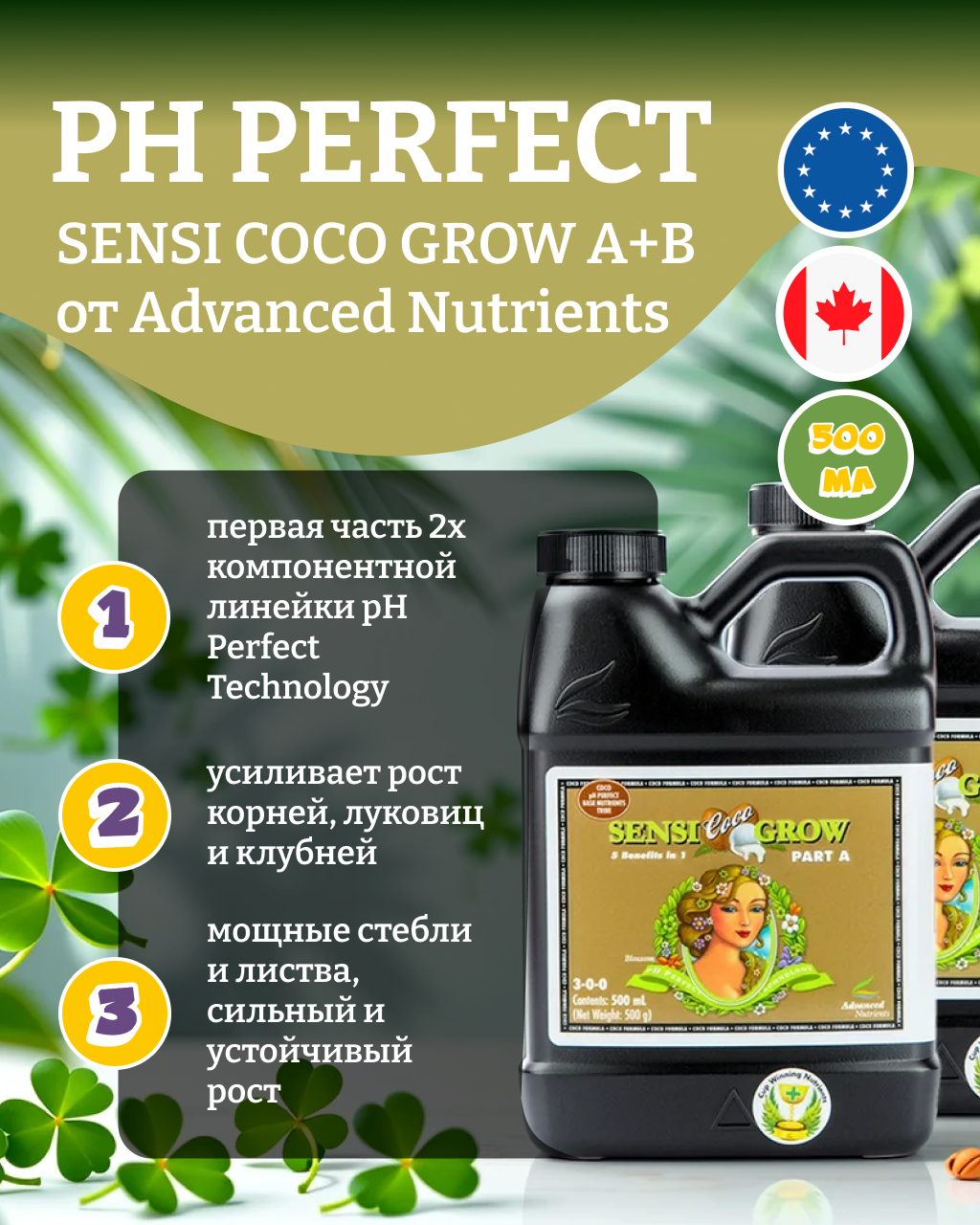 Удобрение для кокосового субстрата Advanced Nutrients Sensi Coco Grow A+B (pH perfect) 0.5 л.: сравнение цен, характеристики, фото, актуальное наличие и цены.