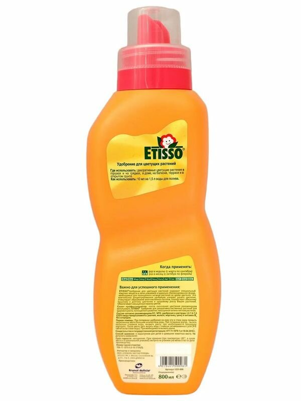 Купить Удобрение для любых цветущих комнатных и балконных растений ETISSO 800 мл с доставкой по всей России. Удобрение для любых цветущих комнатных и балконных растений ETISSO 800 мл: сравнение цен, характеристики, фото, актуальное наличие и цены.