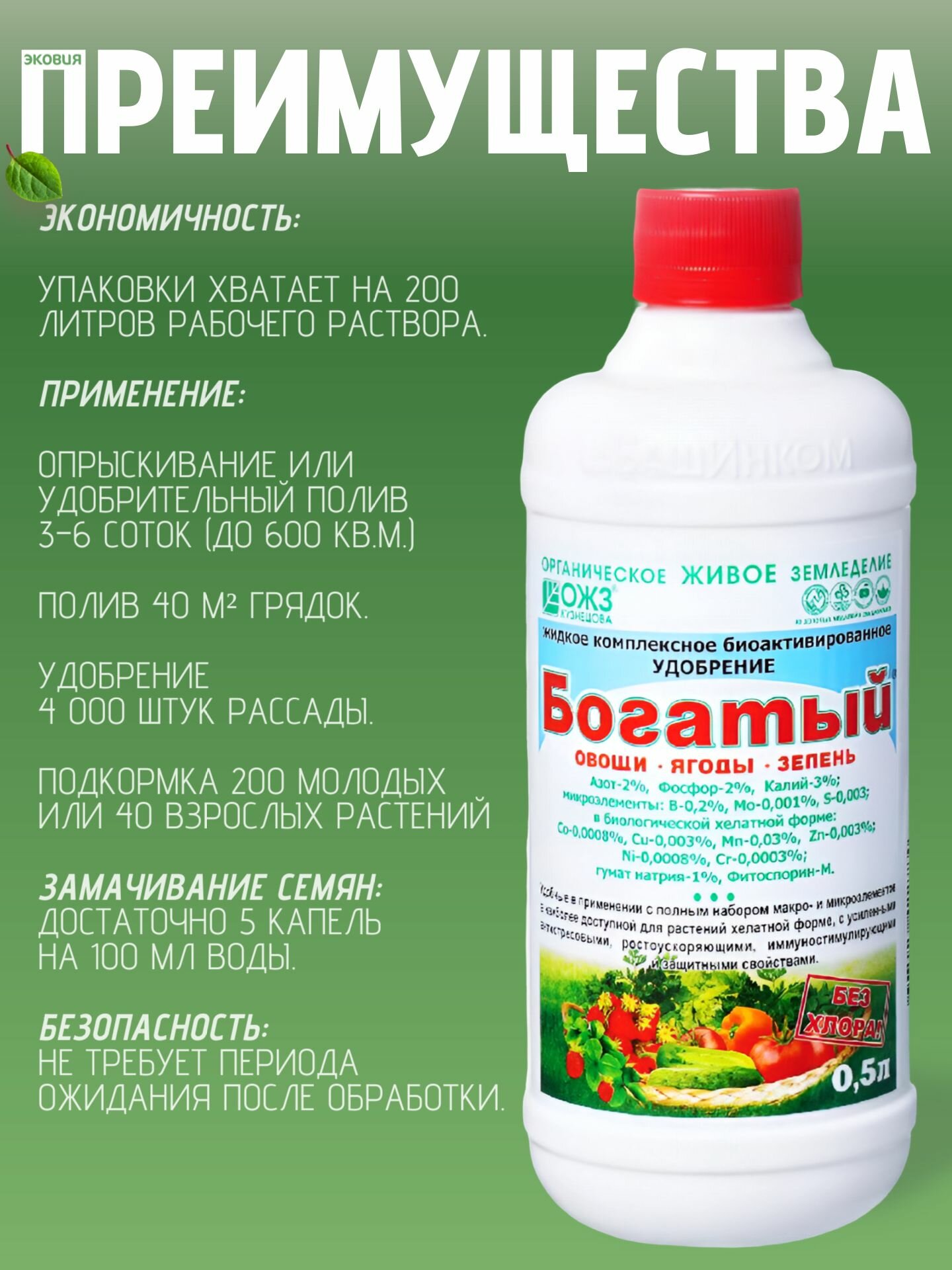 Купить Удобрение для овощей, ягод, зелени Богатый 3 уп по 0,5л с доставкой по всей России. Удобрение для овощей, ягод, зелени Богатый 3 уп по 0,5л: сравнение цен, характеристики, фото, актуальное наличие и цены.