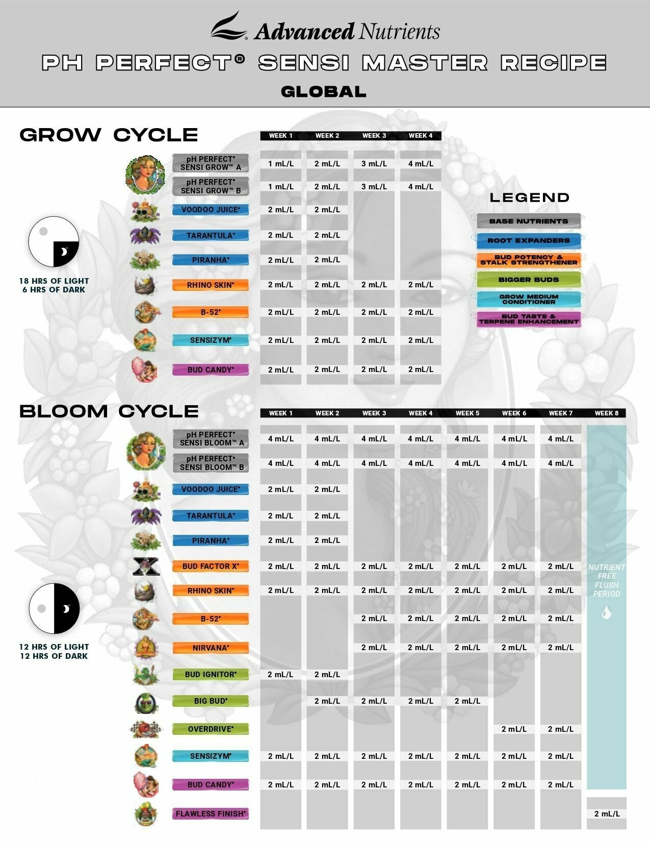 1-2мл/л питательного раствора, 1 раз в неделю (с 1 по 6 неделю цветения); почва: смешайте 1 мл на 1 литр воды для каждого полива; используйте каждую неделю в течение всей вегетативной стадии и фазы цветения; гидропоника: смешайте 1 мл на 1 литр и добавьте в резервуар для питательных веществ; используйте еженедельно в течение вегетативной стадии и фазы цветения